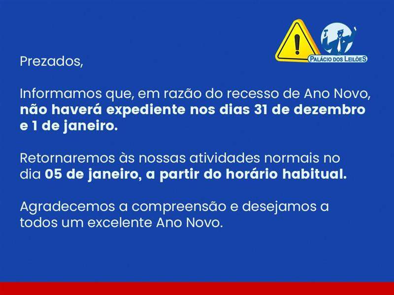 O programa poderá ser alterado ou encerrado a qualquer momento, mediante aviso prévio no site (www.palaciodosleiloes.com.br).